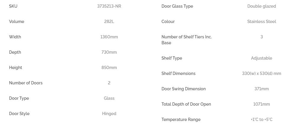 Bromic UBC1360GD-NR 2 Door Under Bench Display Fridge 282L