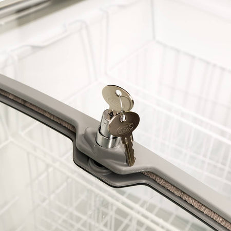 The integrated lock and key system ensure that your merchandise remains secure, giving you peace of mind while the freezer is unattended. - Ample Storage Capacity
