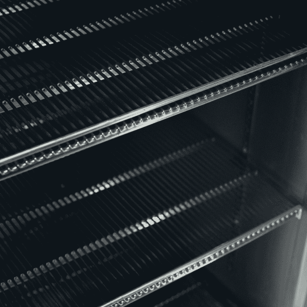The double-glazed glass self-closing doors reduce heat keeping condensation at bay and ensuring your products are clearly visible. - Even Cool Air Distribution