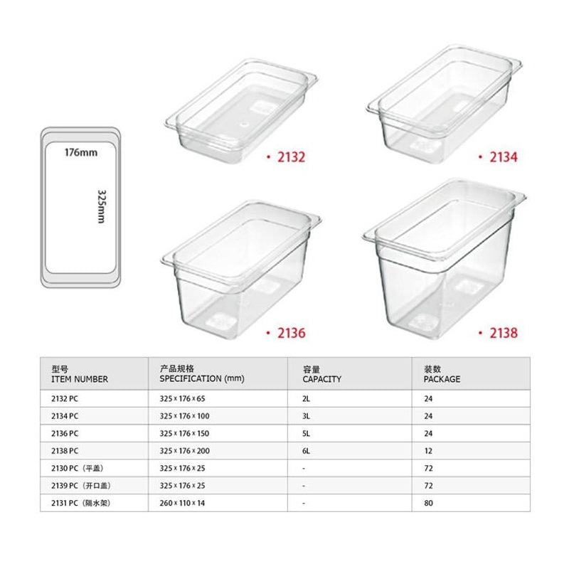 1/3 - Clear - 100mm Gastronorm Pan - PolyCarbonate - 6 pack 325*176*100mm