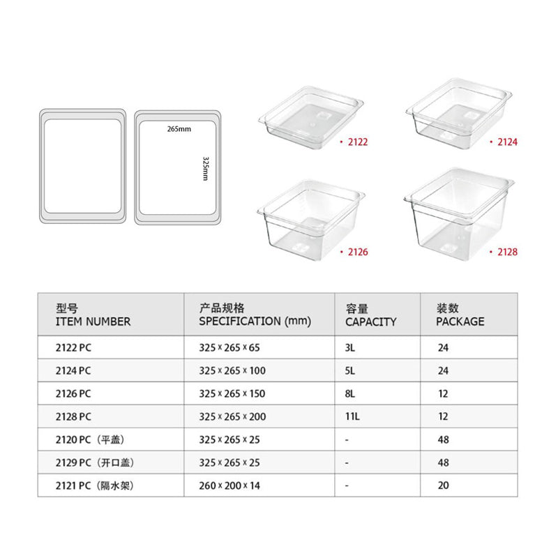 1/4 - Clear - 150mm Gastronorm Pan - PolyCarbonate - 6 pack 265*162*150mm