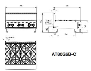 Cookrite 6 Burner Countertop Cooktop NG AT80G6B-C-NG