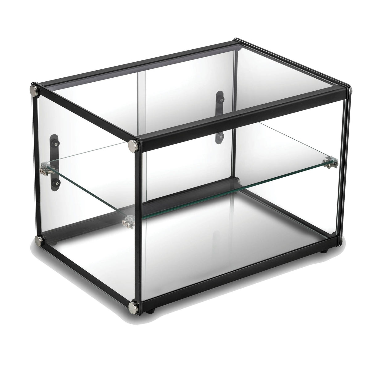 Exquisite CD65 Double Tiers Flat Glass Ambient Cake Display – 65 Litre. Attractive design, glass base, flat pack, easy to clean base, sliding door design for easy opening. Square glass, double tiers layout, double sliding door opening. For placement on top of bench or near counter area for easy access. Available in 4 other sizes: 48 (single tier), 68 (single tier), 90 (double tiers) and 120 (double tiers) litre.