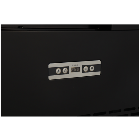 The freezer uses a dynamic fan forced cooling system to maintain consistent temperatures between -10°C and -24°C, ensuring frozen foods remain properly stored. The electronic digital temperature controller and display allow accurate temperature monitoring and easy operation.
