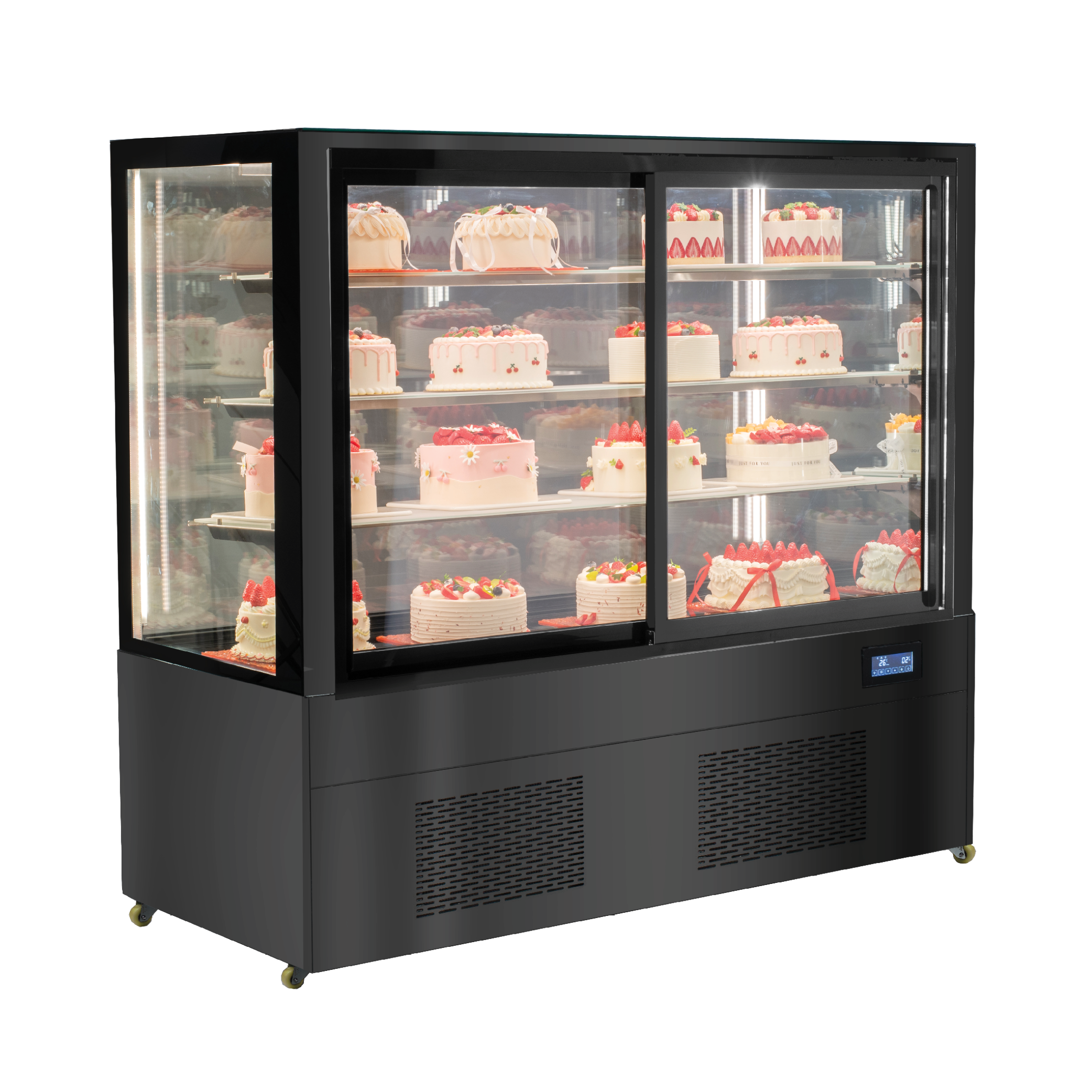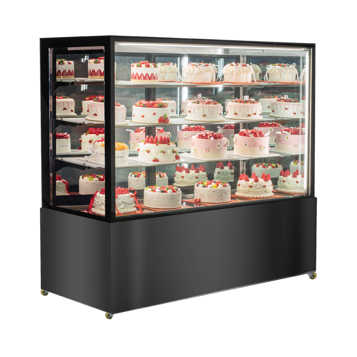 Generous 673L Capacity – spacious four-tier display for multiple cakes and desserts