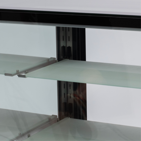 Shelving: Three frosted glass shelves plus base shelf (4 levels total)