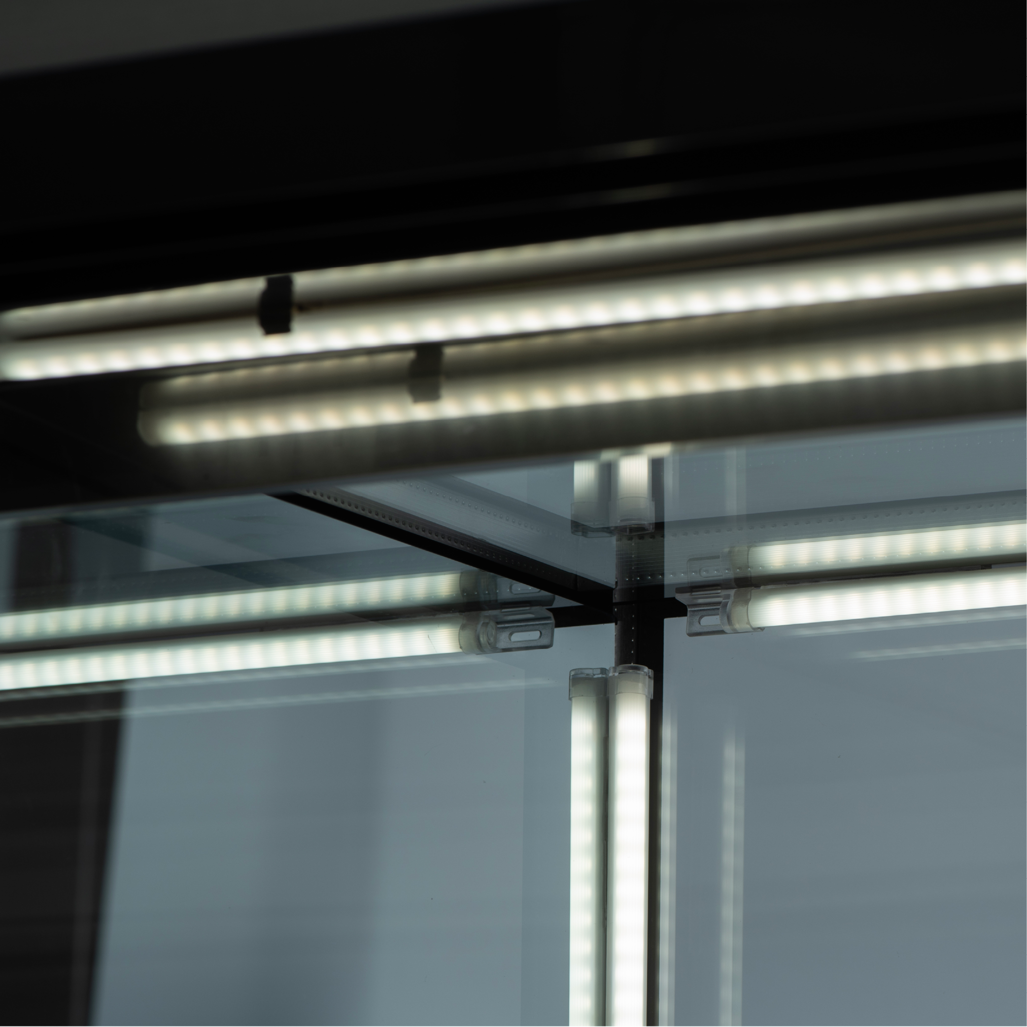 Elegant Presentation – mirror glass, LED lighting, and frosted shelving create a premium display