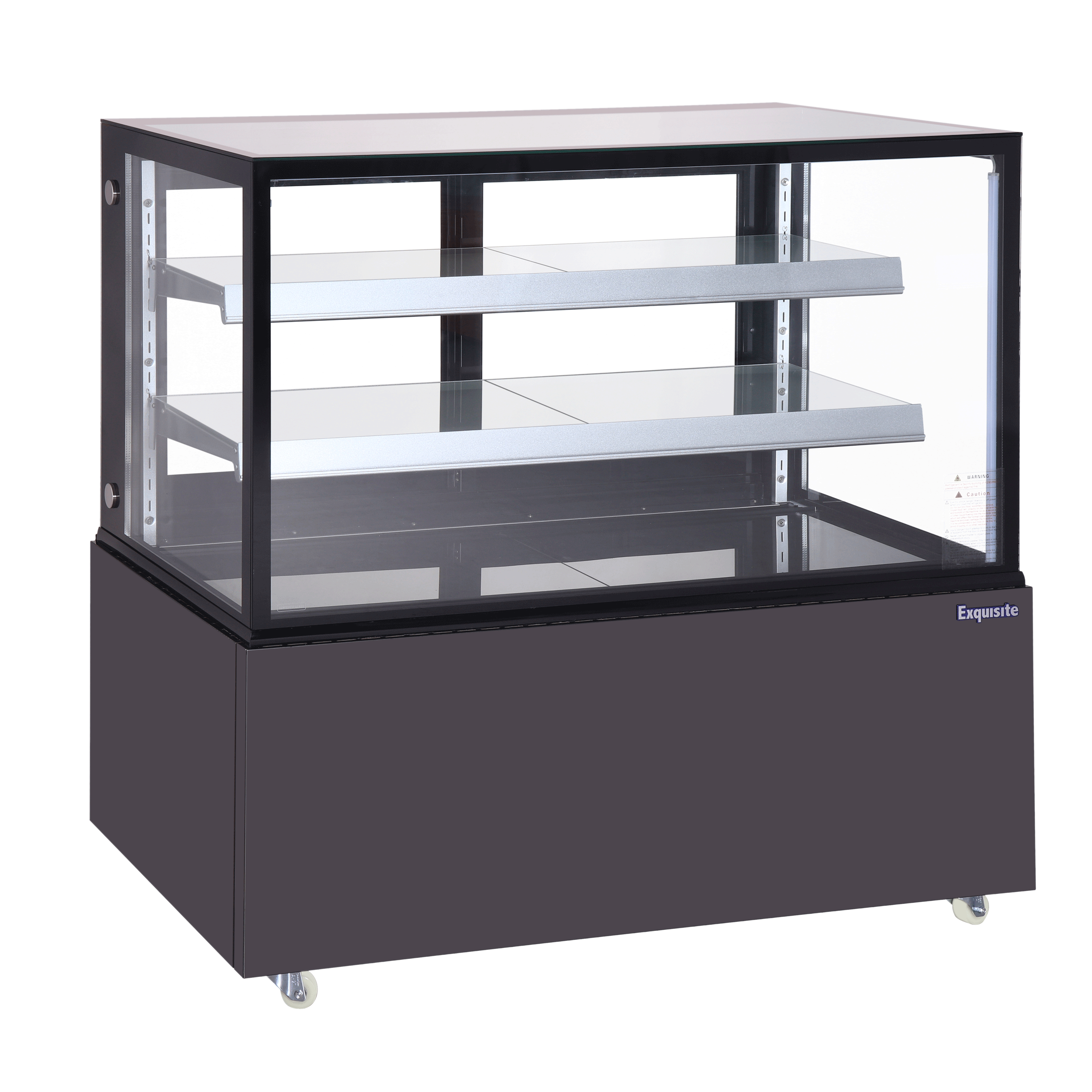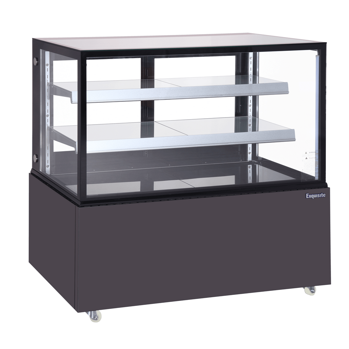 Exquisite CDR209 Three Tiers Cake Display Refrigerators 900mm Width with gross volume 270 Litre. Double glazed glass door for maximum insulation, digital controller and temperature display, dynamic fan forced cooling system with automatic defrosting, black stainless steel finish, frosted glass shelves, sliding door, internal LED light, using R290 gas, temperature set range 2 to 6 Celcius. Warranty: 12 months parts and labour, Australia wide.