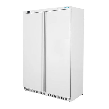 On the outside, the lockable double doors provide stock security, and thanks to the full-length handles, the fridge is easy to access whenever needed. Advanced 60mm insulation delivers impressive energy savings for a fridge of this capacity. It's easy to clean too, with a strong white steel exterior and rear rollers which make positioning the fridge simple.