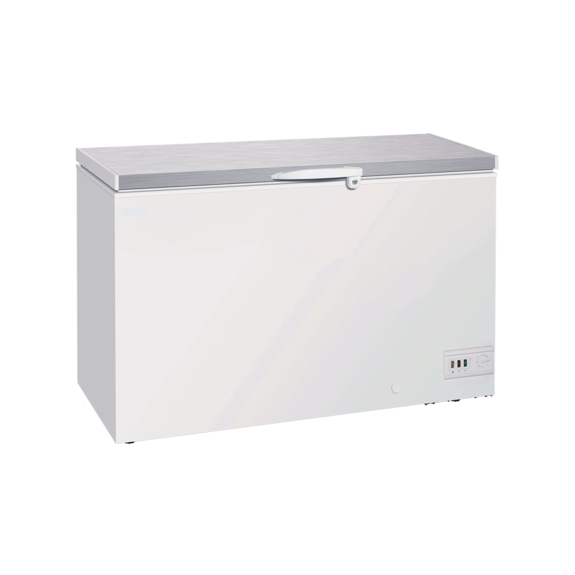 Exquisite ESS550H Stainless Steel Top Storage Chest Freezers 550 Litres with Baskets with gross volume 550 LItre. Full basket, white painted steel body with stainless steel lids, aluminium liner material, static cooling system with manual defrosting, door handle with lock, plastic coated steel baskets, castor wheels, internal light and using R134a gas, temperature set range -18 to -25 Celcius. Warranty: 12 months parts and labour, Australia wide.
