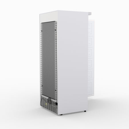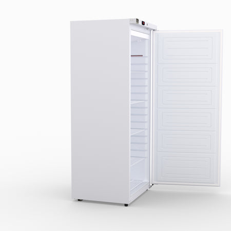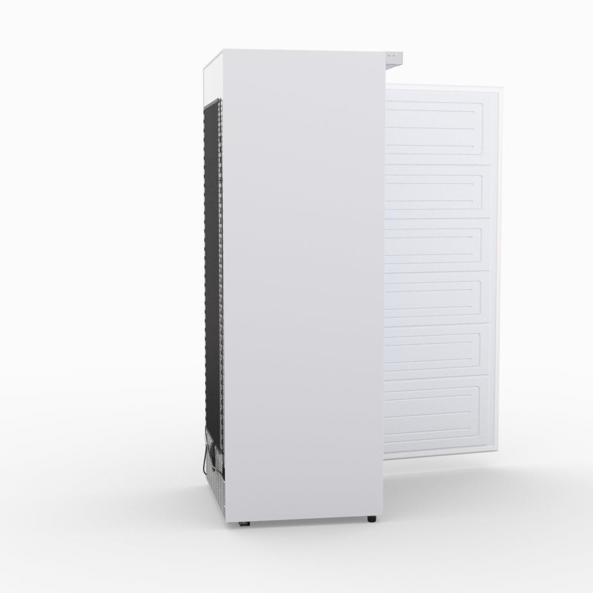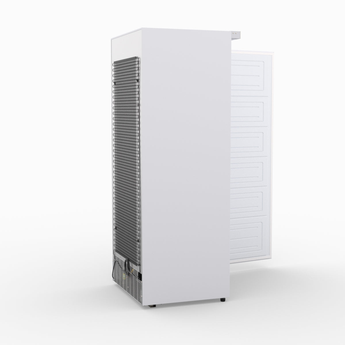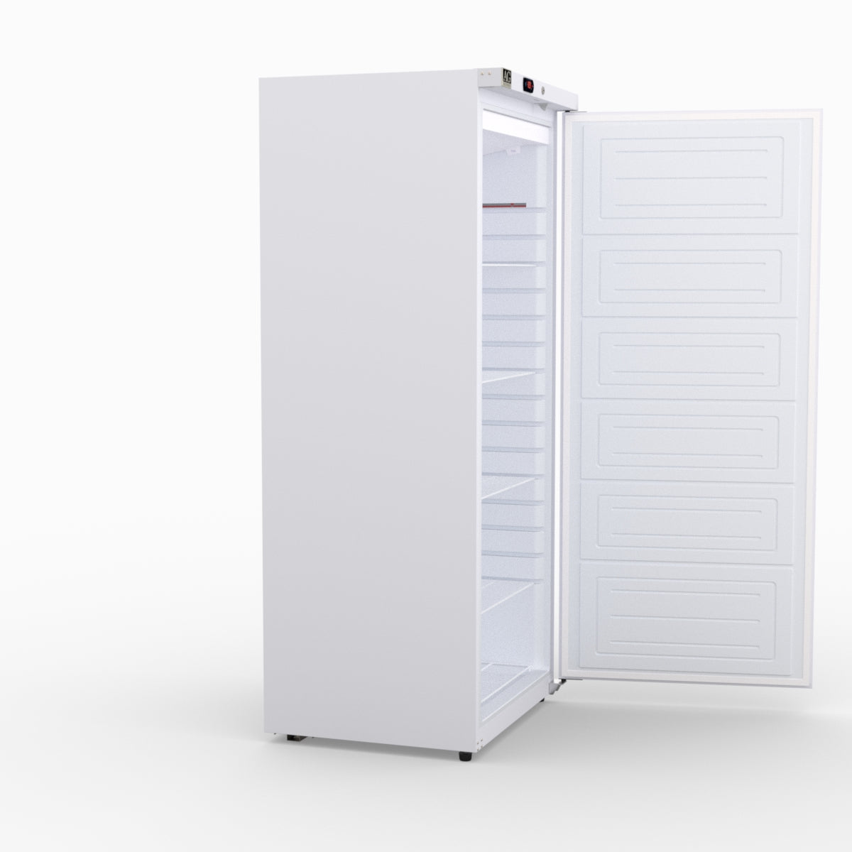 The upright freezer is specifically engineered for light-duty storage-centric solutions at bustling cafés, kiosks, food vans, and sandwich bars. It has a single door and a space-efficient design, and it has a total storage capacity of 510 litres. Its durable construction ensures reliability and space-saving size. The freezer has fan-forced ventilated cooling and electronic temperature controls, ensuring optimal performance and consistent refrigeration.