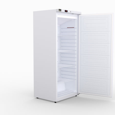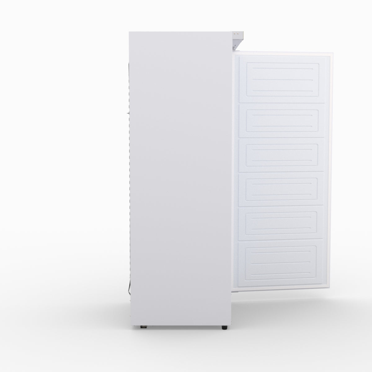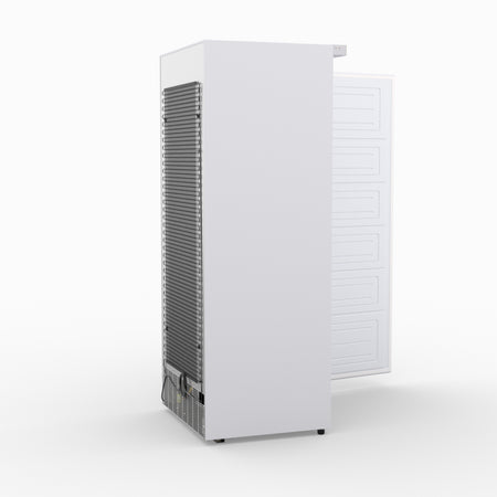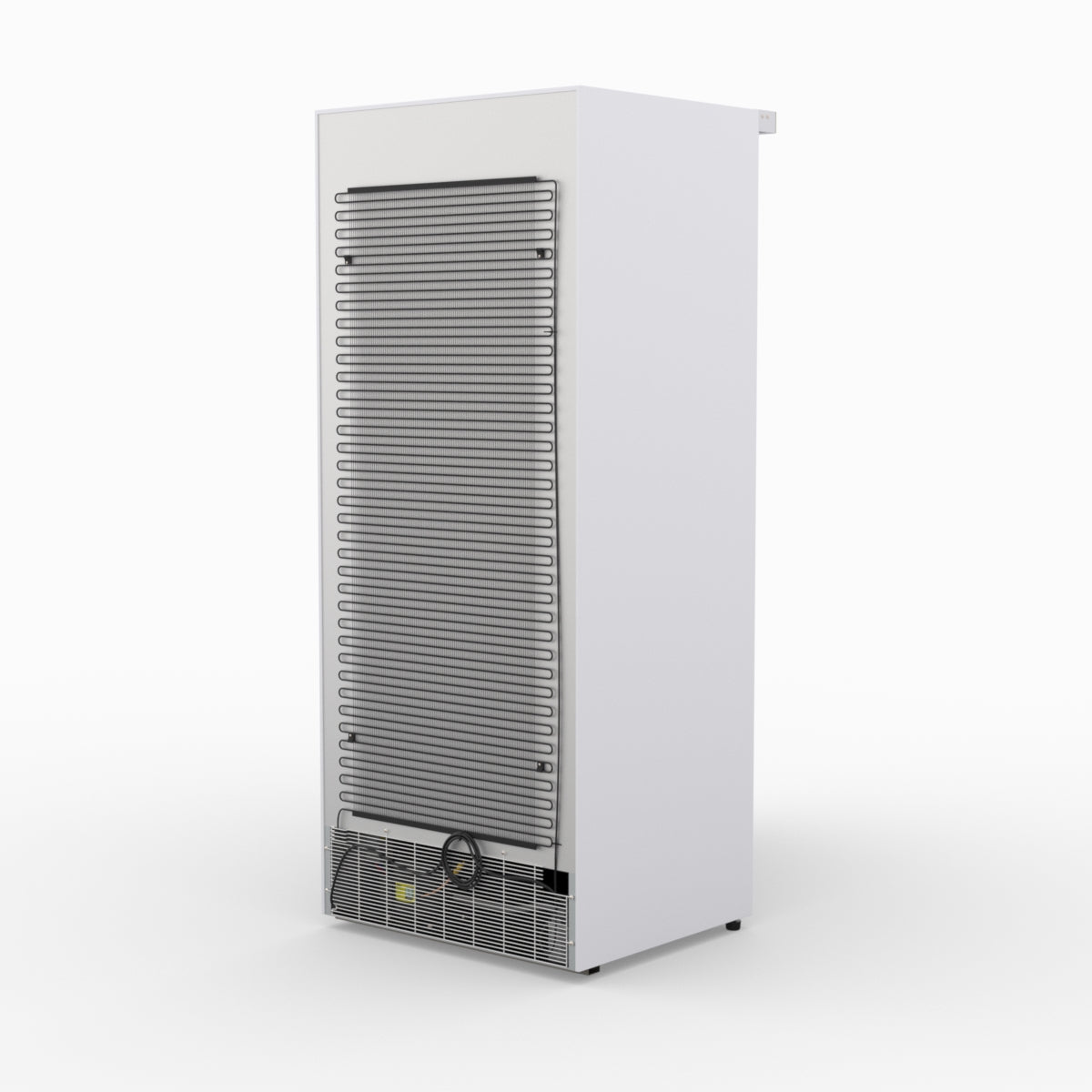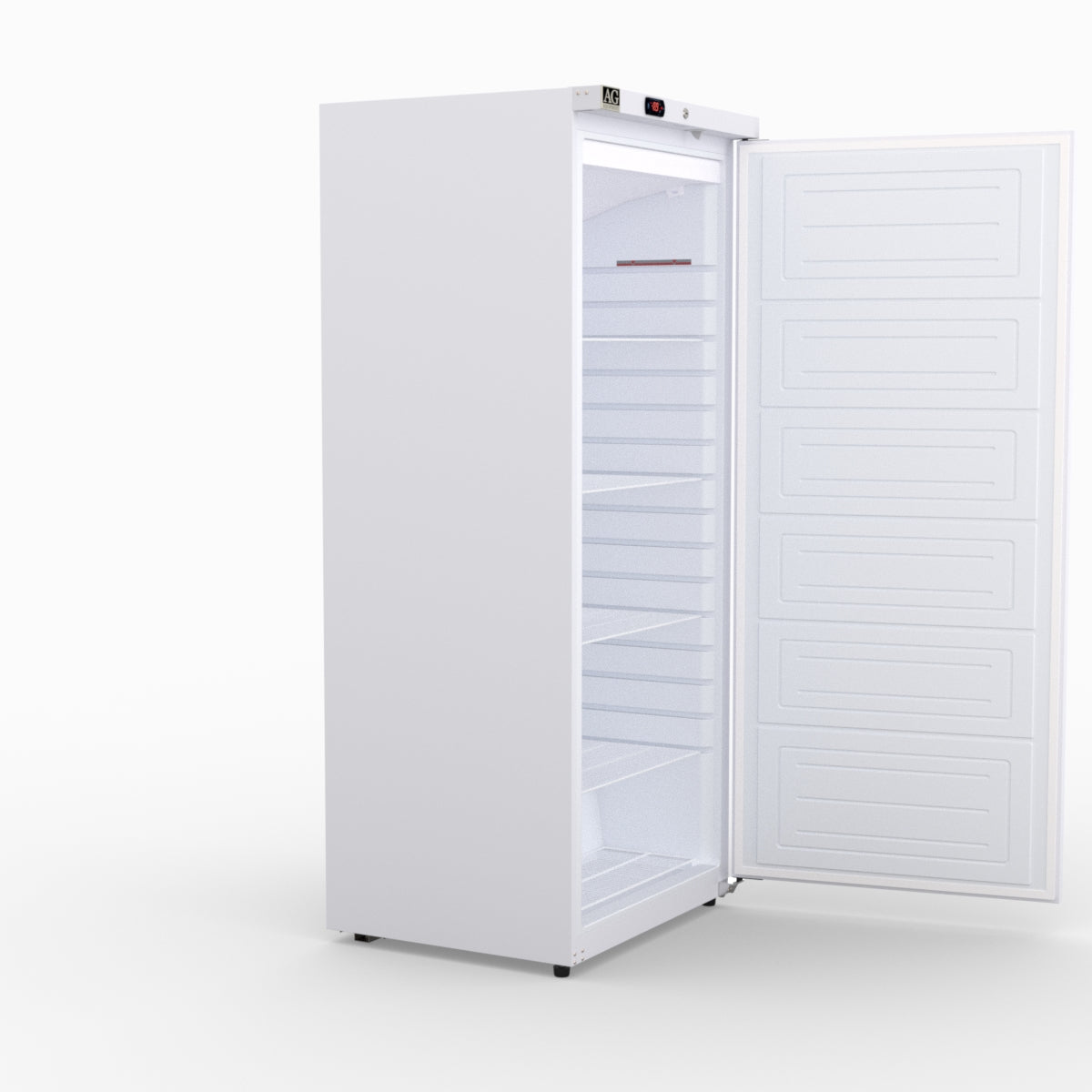 The upright freezer is specifically engineered for light-duty storage-centric solutions at bustling cafés, kiosks, food vans, and sandwich bars. It has a single door and a space-efficient design, and it has a total storage capacity of 510 litres. Its durable construction ensures reliability and space-saving size. The freezer has fan-forced ventilated cooling and electronic temperature controls, ensuring optimal performance and consistent refrigeration.