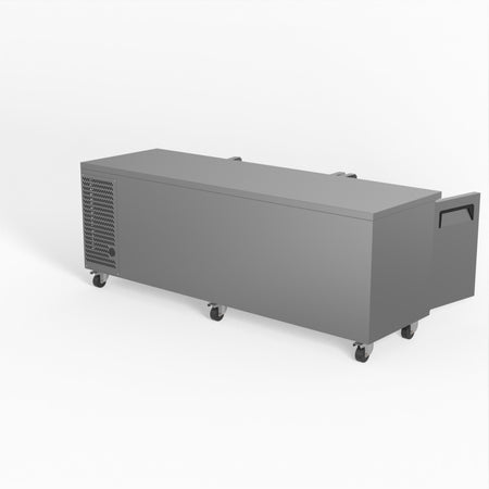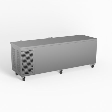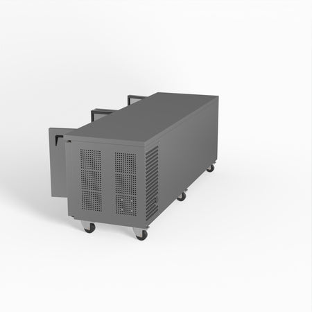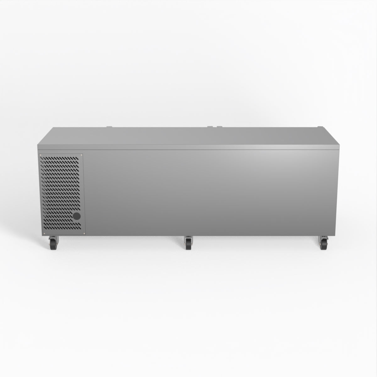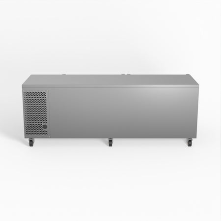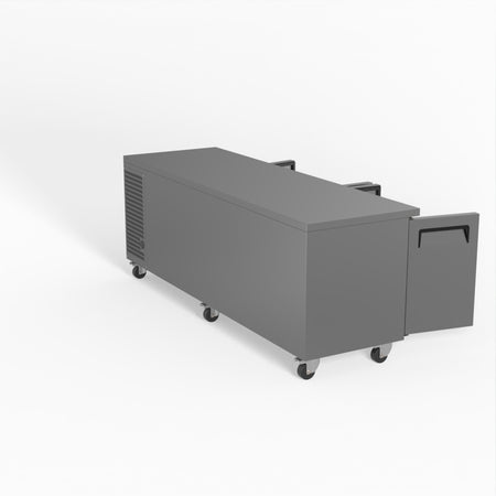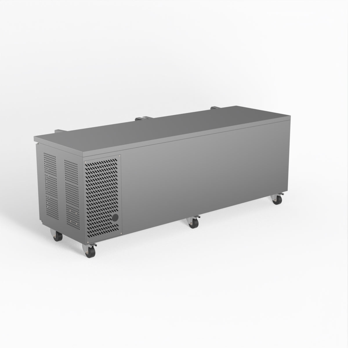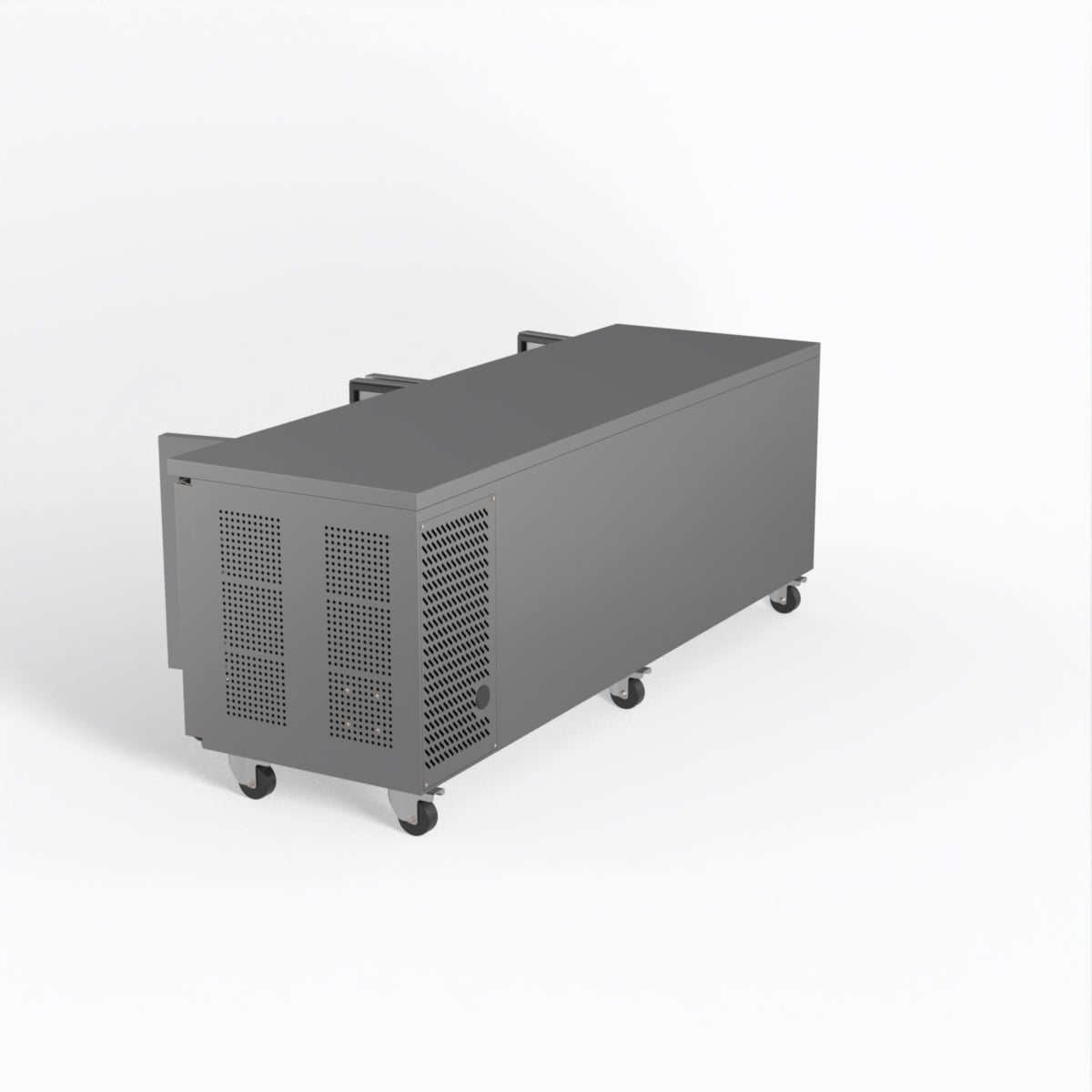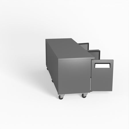 Our 4-door commercial worktop refrigerator comes standard with castor wheels for easy manoeuvrability. It is fitted with self-closing doors so you can let them just swing shut, saving you time and improving efficiency. This smart bench / under-bench fridge is designed for busy kitchens in pubs, restaurants, and bars. 4 doors, each with two adjustable wire shelves, allow this fridge to utilise its full 553-litre capacity. This model can store a multitude of items, with internal LED lighting providing easy visibility. The robust stainless-steel body is capable of withstanding an ambient temperature of up to 43°C. It is also fitted with fan-forced, ventilated cooling and electronic temperature controls.