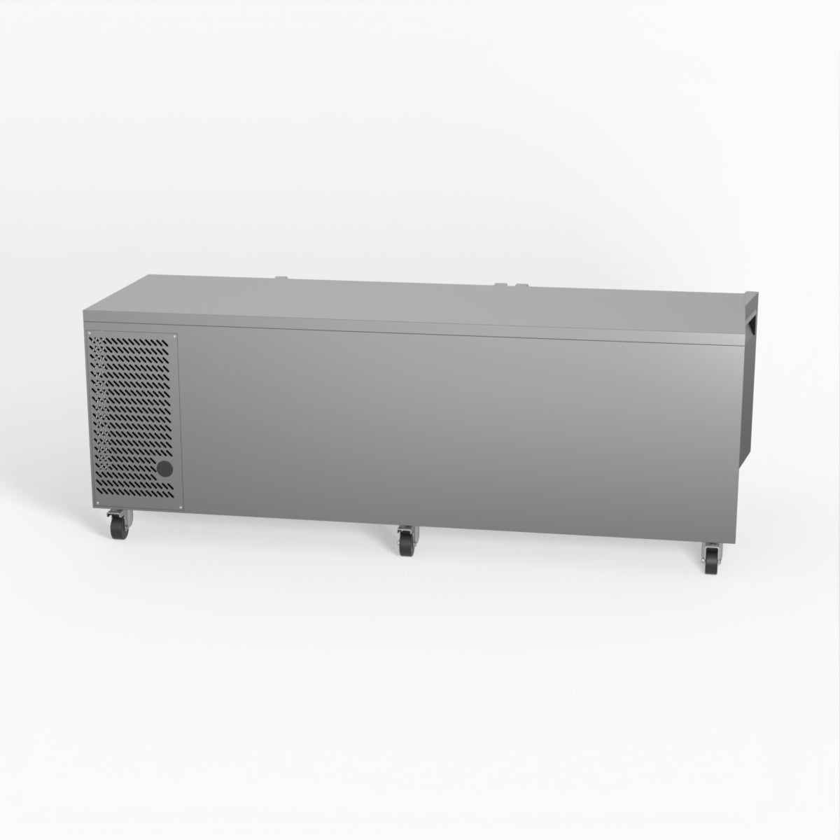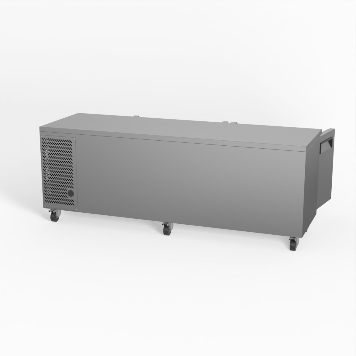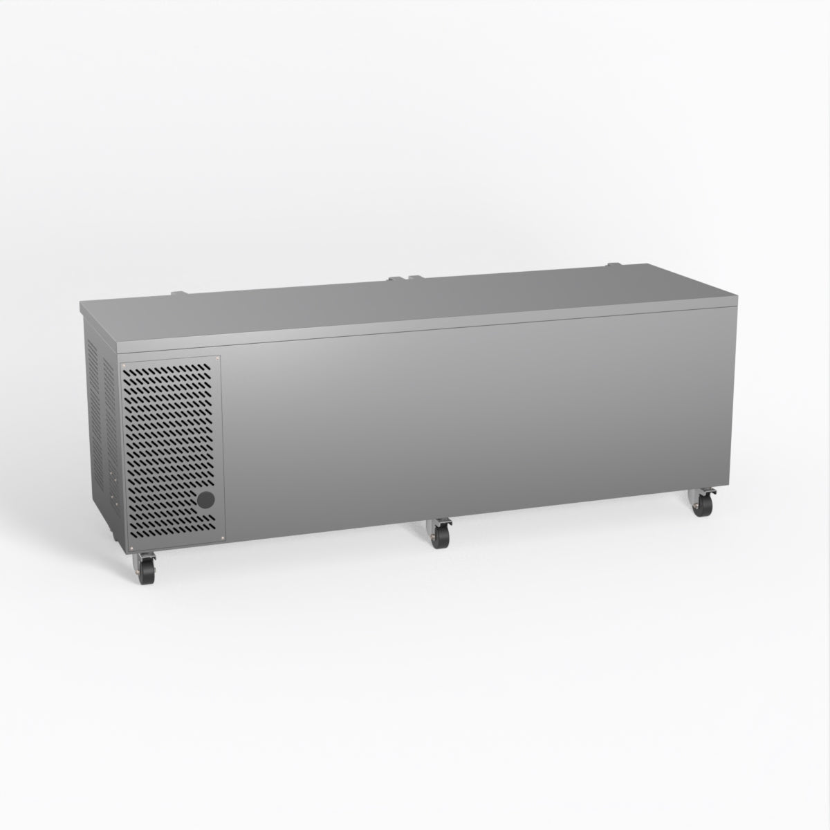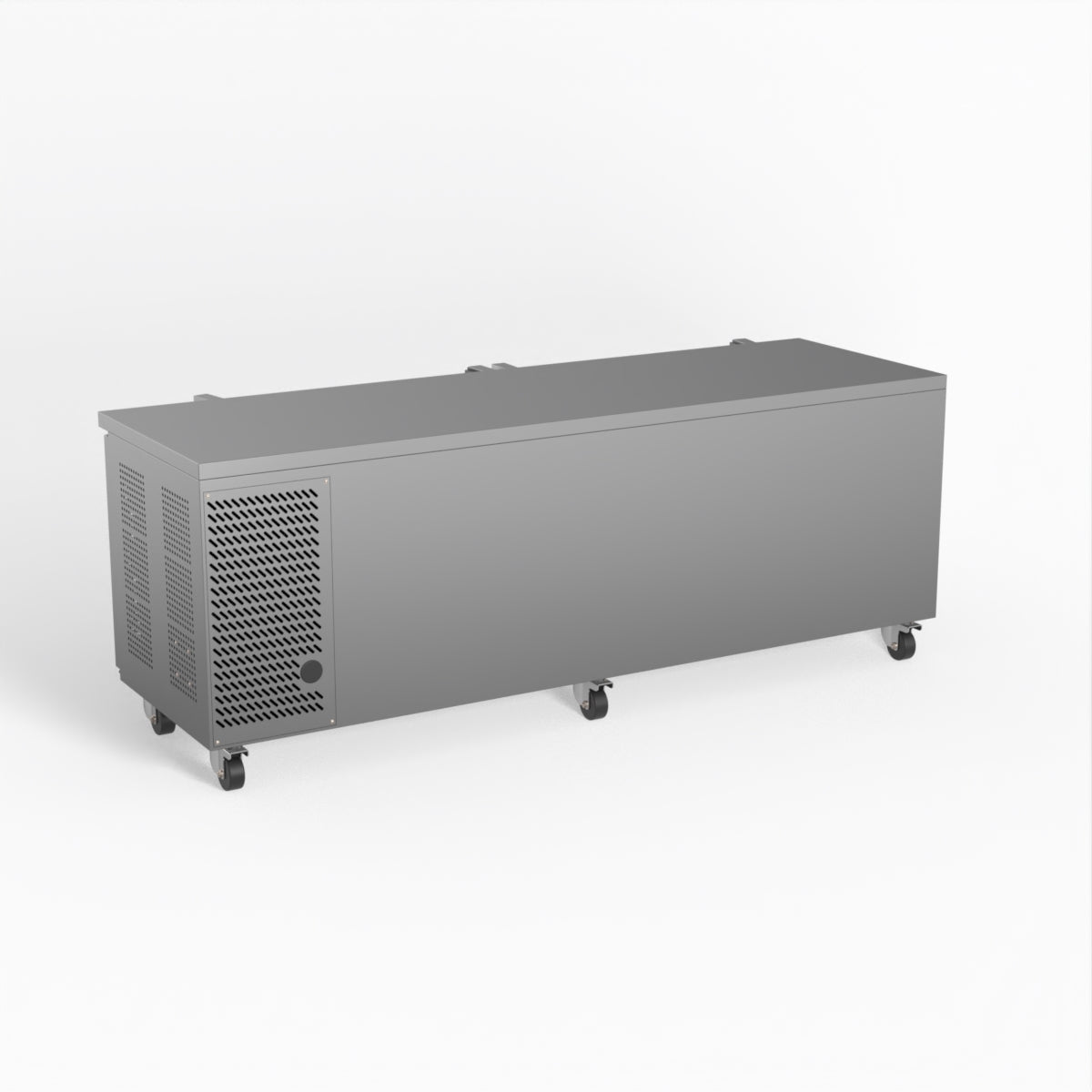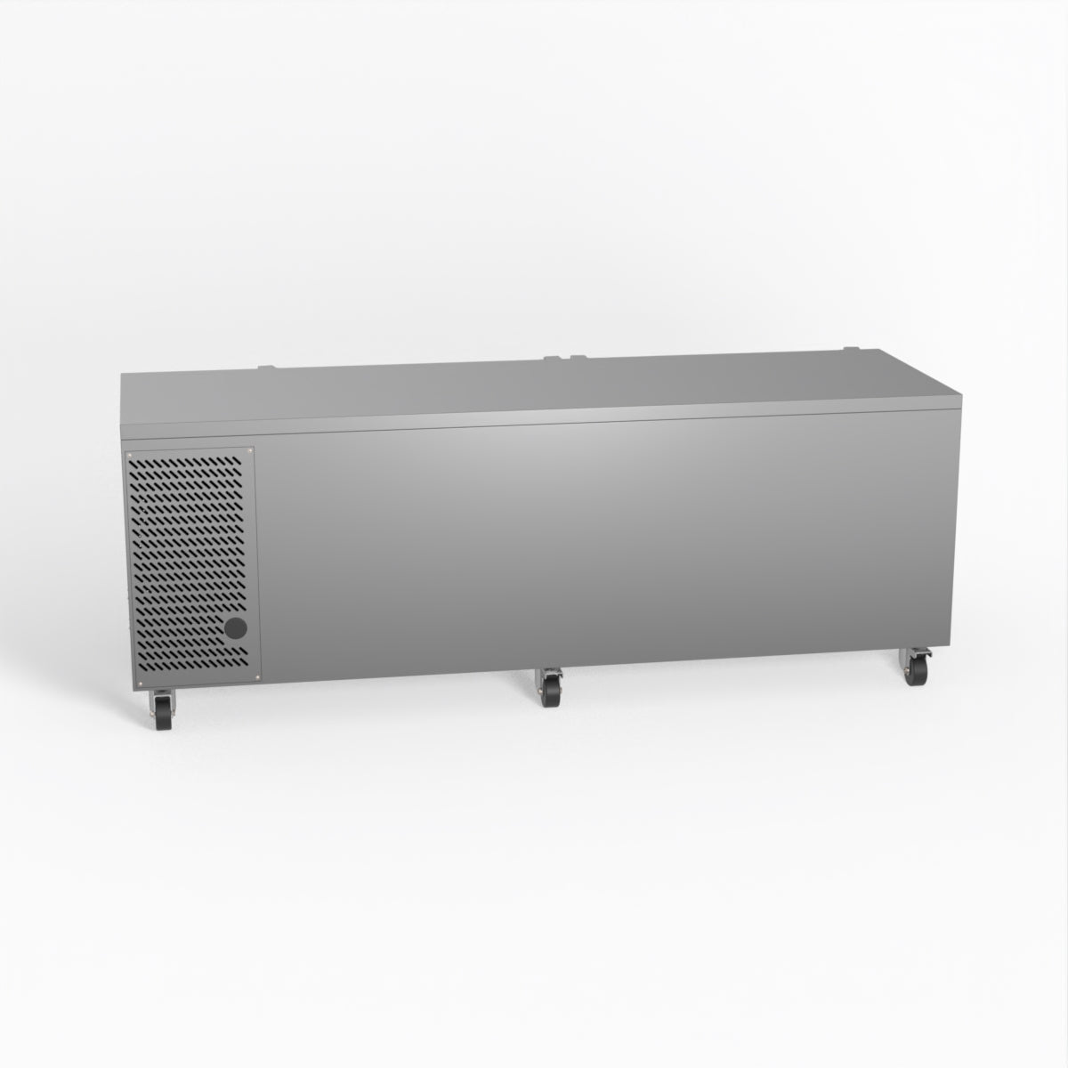 Our 4-door commercial worktop refrigerator comes standard with castor wheels for easy manoeuvrability. It is fitted with self-closing doors so you can let them just swing shut, saving you time and improving efficiency. This smart bench / under-bench fridge is designed for busy kitchens in pubs, restaurants, and bars. 4 doors, each with two adjustable wire shelves, allow this fridge to utilise its full 553-litre capacity. This model can store a multitude of items, with internal LED lighting providing easy visibility. The robust stainless-steel body is capable of withstanding an ambient temperature of up to 43°C. It is also fitted with fan-forced, ventilated cooling and electronic temperature controls.
