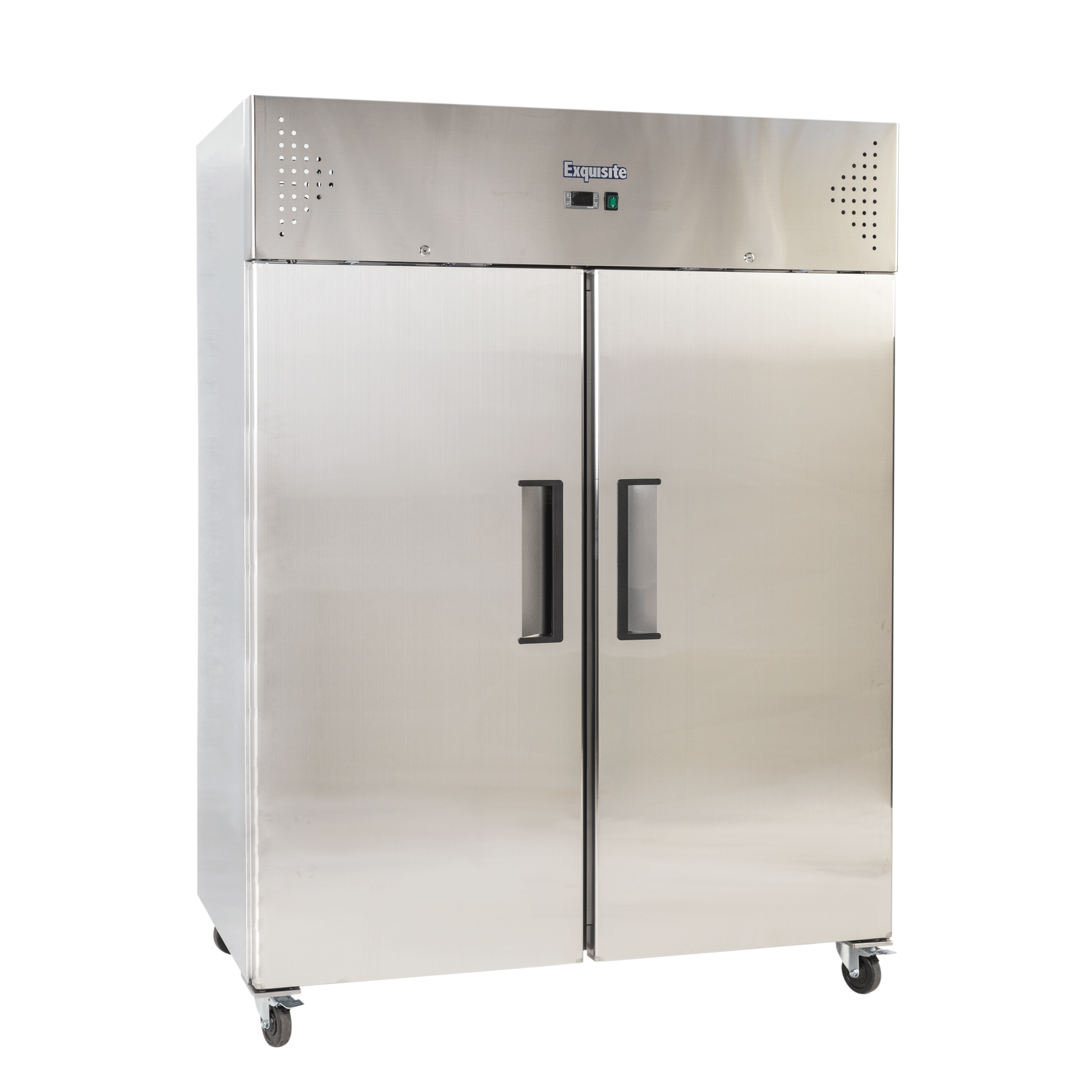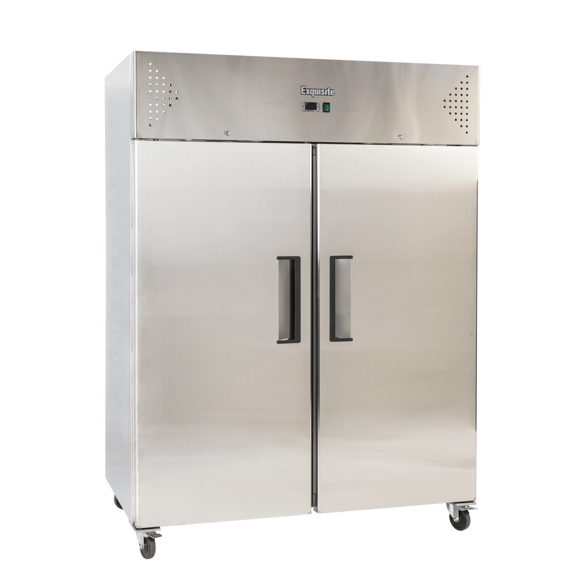 Exquisite GSC1410H Two Solid Doors Upright Storage Refrigerators with gross volume 1476 Litre. Equiped with digital controller and temperature display, self closing doors stainless steel doors with integrated handles, castor wheels, dynamic fan forced cooling system with automatic defrosting, stainless steel finish exterior and interior, plastic coated steel shelves to avoid rust, lockable engine compartment, lockable castor wheels and using R290 gas, temperature set range -2 to +8 Celcius. Warranty: 30 months parts and labour, Australia wide.