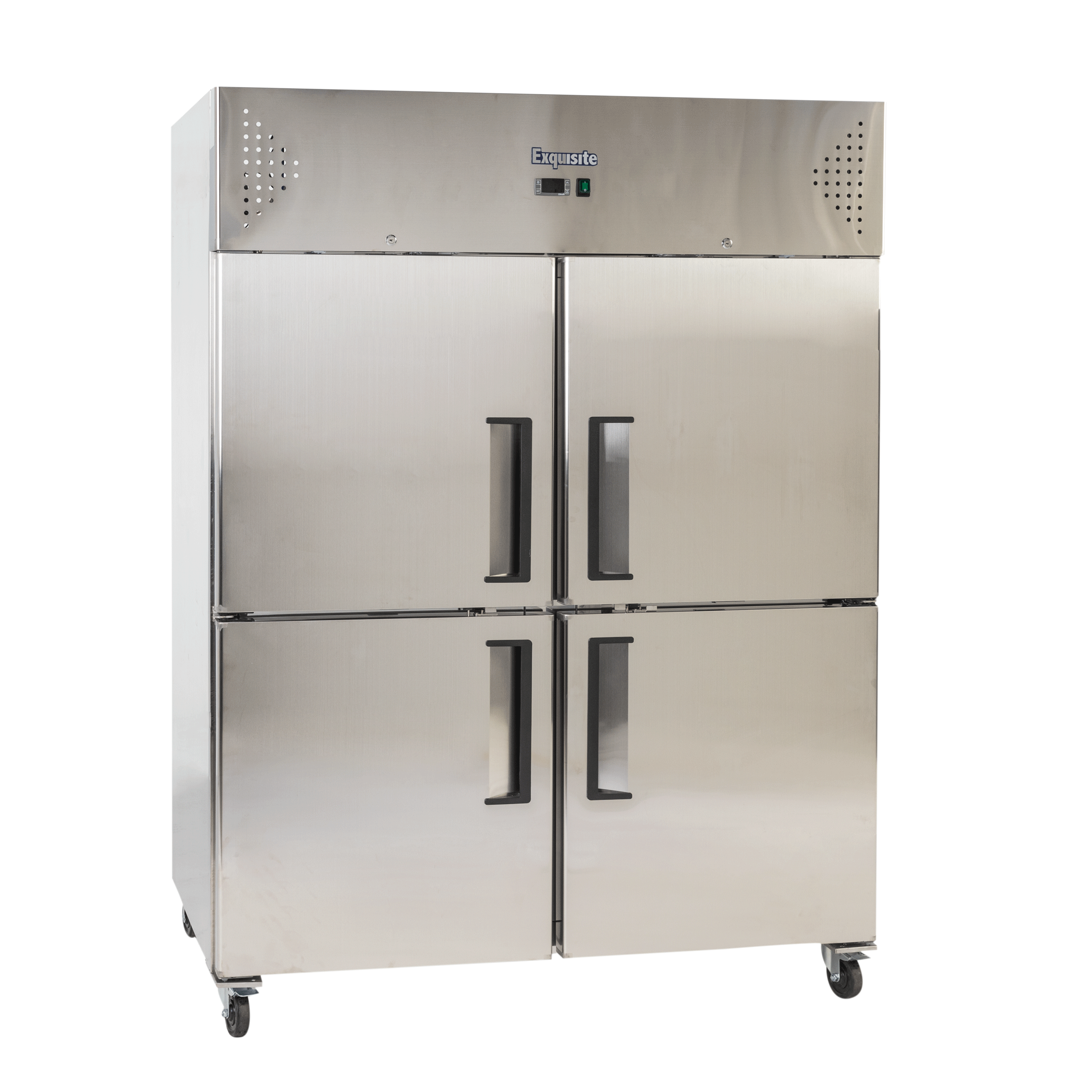 Exquisite GSC1412H Two SPLIT Solid Doors Upright Storage Refrigerators with gross volume 1476 Litre. Equiped with digital controller and temperature display, self closing doors stainless steel doors with integrated handles, castor wheels, dynamic fan forced cooling system with automatic defrosting, stainless steel finish exterior and interior, plastic coated steel shelves to avoid rust, lockable engine compartment, lockable castor wheels and using R290 gas, temperature set range -2 to +8 Celcius. Warranty: 30 months parts and labour, Australia wide.