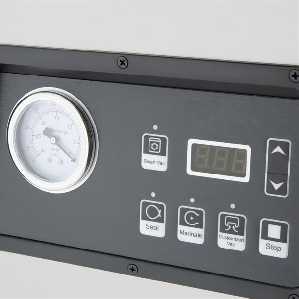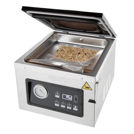 Pack food accurately and securely with the Apuro oil pump chamber vac pack machine. With its large 9ltr capacity vacuum tank and powerful 800W oil pump, the Apuro vacuum sealer makes vacuum packing food fast and easy.