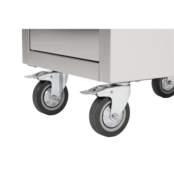 Mounted on four castors (two with brakes), the fryer is easy to position and move for cleaning or maintenance.