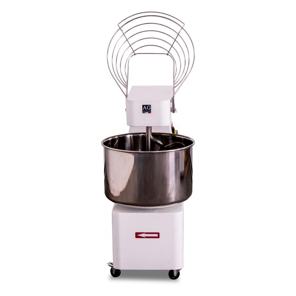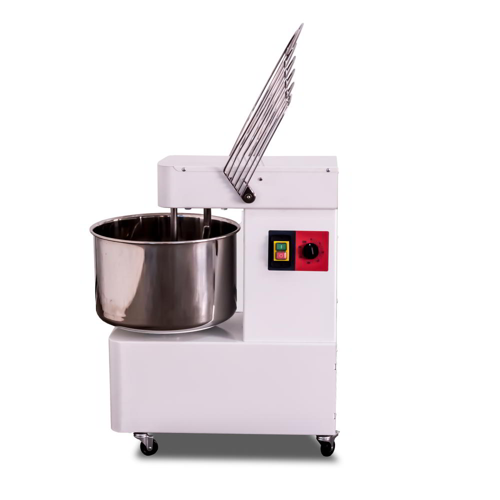 Our 32 Litre Italian-made spiral mixers are ideal for pizzerias, pastry shops, bakeries and even for the family home. The specially shaped spiral allows for a perfectly mixed dough in just a few minutes. The bowl, spiral, central column, as well as protection grid, is made from high-quality stainless steel. The shape of the dough hook in our spiral mixers is specifically designed to perfectly mix dough in just a few minutes. The gearbox of this mixer is designed to be as quiet as possible with an oil bath gearbox.