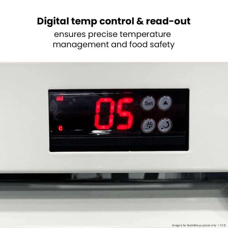 - ✅ Durable and Easy to Move – Made with a white powder-coated steel frame, 2-layer tempered glass, and heavy-duty castors, this fridge is built for long-lasting use and easy mobility.
