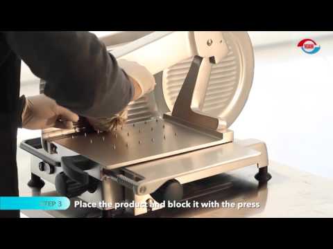 - Meat grip spikes hold product securely for even slicing