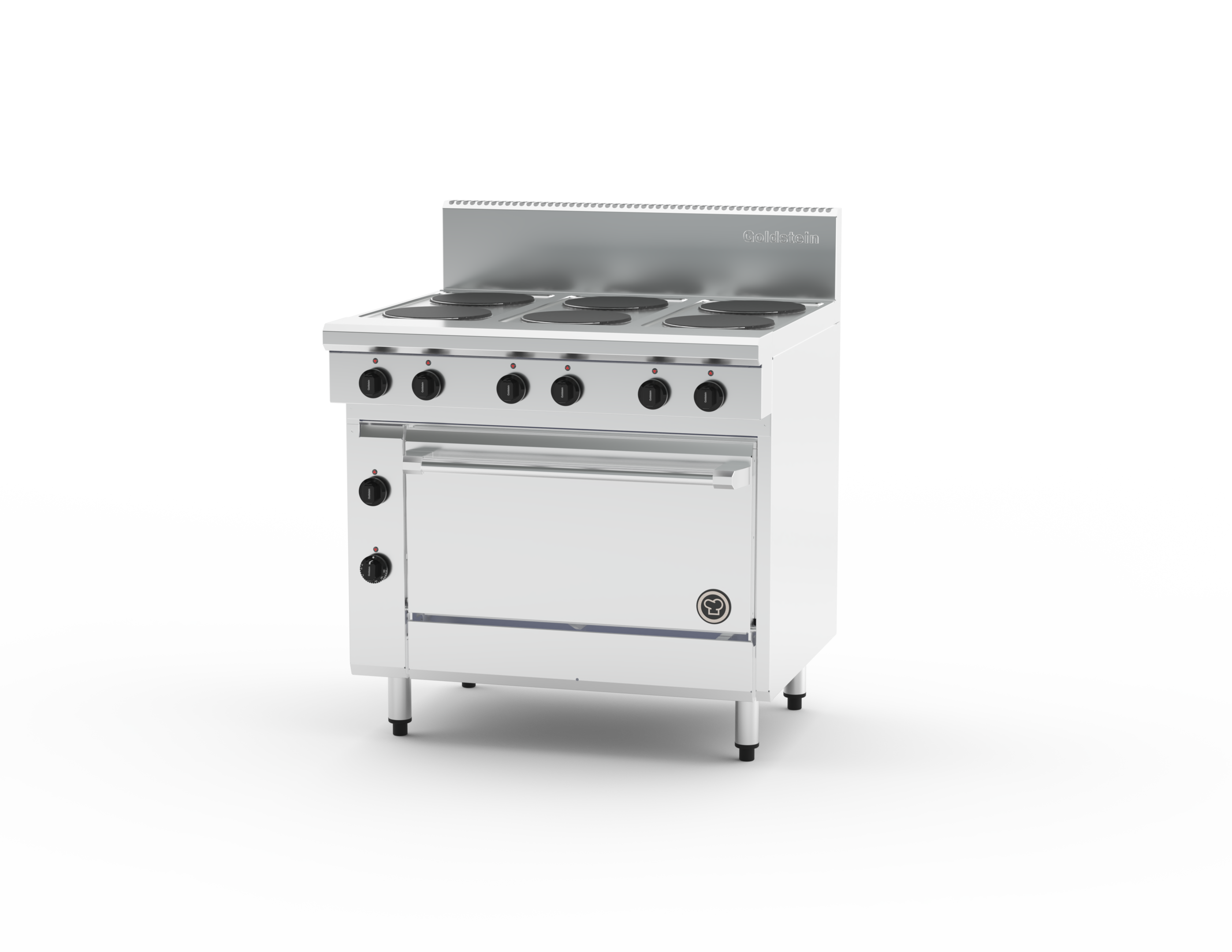 Proudly Australian made, the Goldstein PE6S28-X electric oven range is a durable and efficient unit designed for commercial kitchens. It features six 2 kW cast iron solid plates for even, reliable cooking and a fully insulated GN 1/1 static oven with thermostatic control from 100°C to 280°C. Built for performance and durability, it includes a welded stainless steel body, reinforced control knobs, cool-to-touch oven handle and easy-clean surfaces. With front-accessible servicing and adjustable legs, the PE6S28-X is a smart choice for restaurants, cafés, and institutional kitchens seeking long-term reliability.