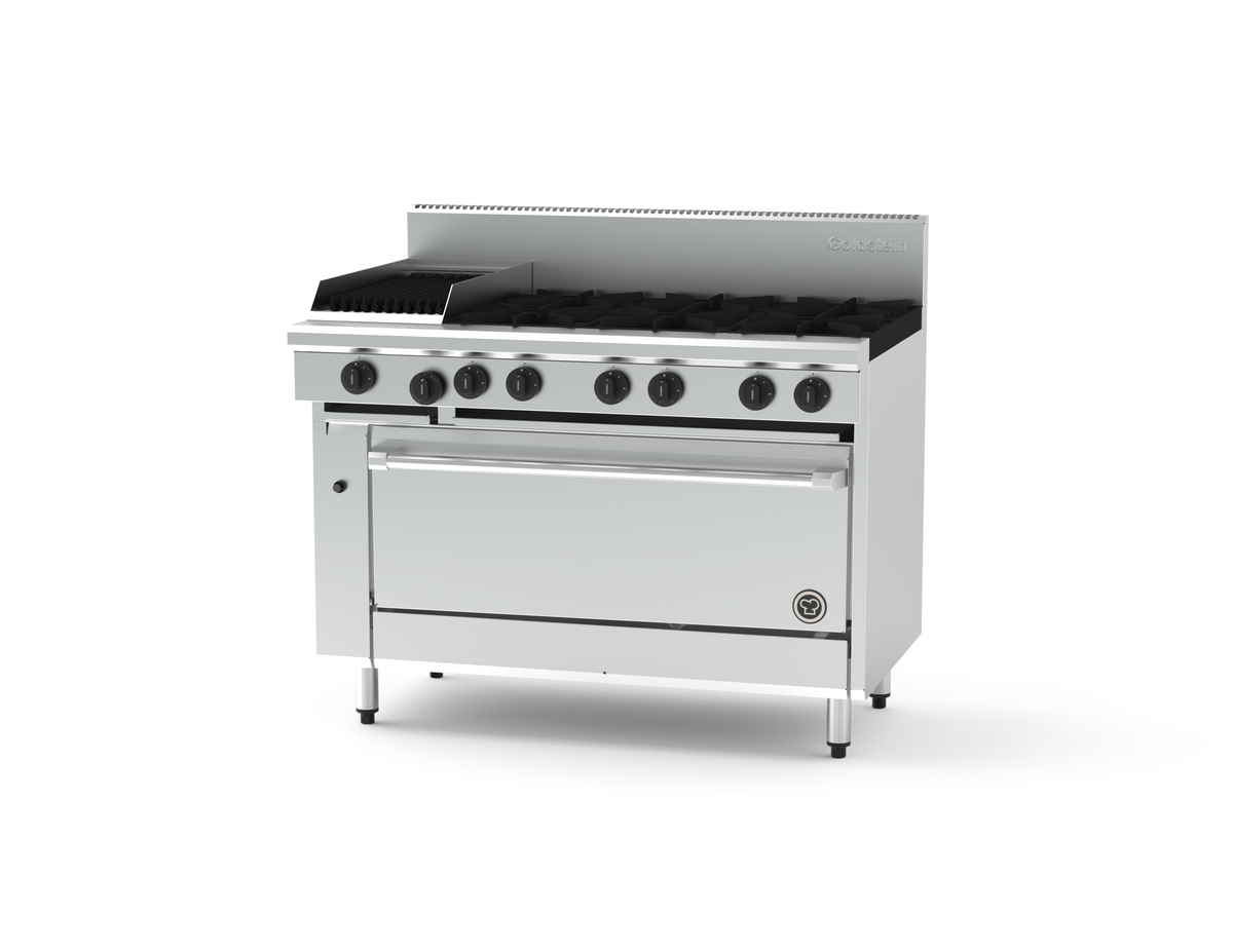 Goldstein PF12Q640E-X 6 Burner Cooktop + 305mm Chargrill & Electric Static Oven