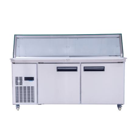 - ✅ Built-In Storage Shelf – Storage shelf inside the refrigerated cabinet allows for easy organization of additional ingredients or supplies.