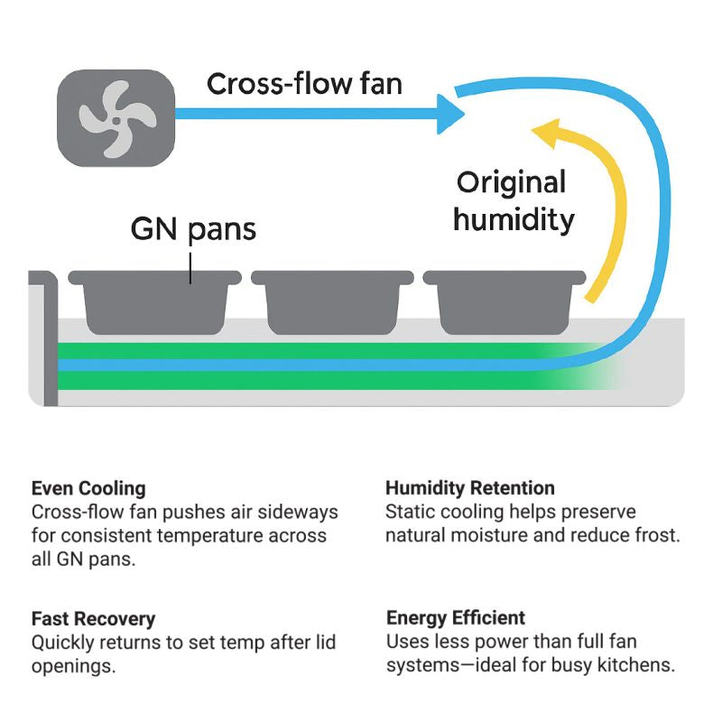 - Pre-Chill Requirement – Cold tops are holding units. Products must be pre-chilled to less than 5°C before filling the top section.