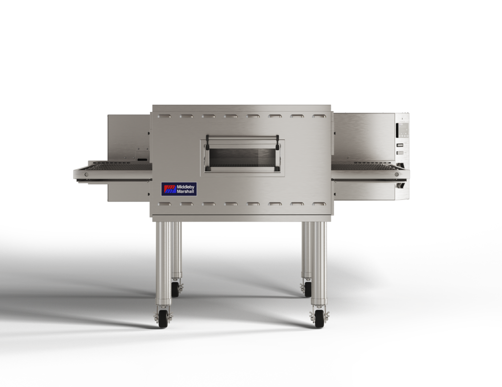 Middleby Marshall PS Series conveyor ovens bake both faster and at a lower temperature than other ovens. Patented vertical columns of hot air move heat aerodynamically instead of using high temperatures. The streams of hot air remove the boundary layers of cool heavy air which tend to insulate the product. This allows for rapid results without burning.