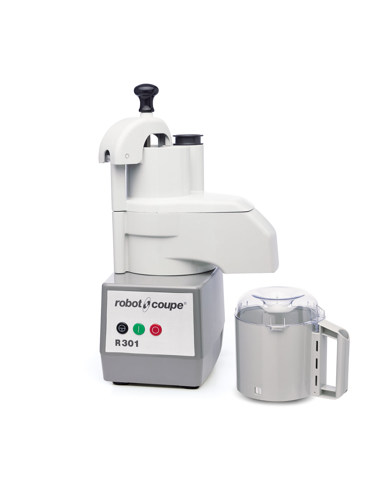 R 301 Food Processor: Cutter/Vegetable Slicer equipped with a cutter attachment for chopping, fine mincing, emulsions, grinding and kneading, and a Vegetable preparation attachment for slicing, grating, ripple cut slicing, and julienne.