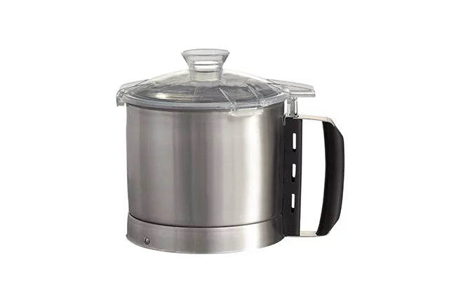 R402 V.V. Food Processor: Cutter/Vegetable Slicer. Single phase. Power 1000W. Variable speed from 300 to 1000 rpm in vegetable preparation function and 300 to 3500 rpm in cutter function. 4.5 litre stainless steel cutter bowl and smooth bowl-base blade assembly. Vegetable preparation attachment with side ejection and stainless steel bowl. Lid equipped with 2 hoppers : 1 large and 1 cylindrical hopper. Supplied with 4 stainless steel discs: 2 and 4 mm slicers, 2 mm graters and 4x4 mm julienne. Large range of more than 23 discs as option. 20 to 100 meals. Cutter attachment: lid, bowl, and high resistance stainless steel smooth blade assembly with removable cap.