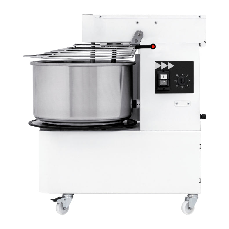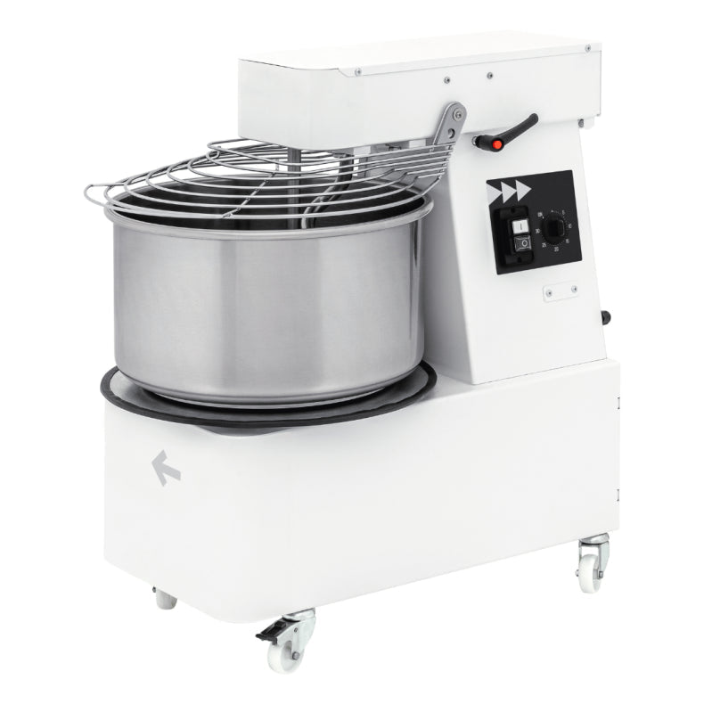 The Prismafood spiral mixer with a rising top and extractable bowl is the ideal piece of equipment for pizzerias, bakeries, and small commercial kitchens. Its unique spiral design ensures perfectly mixed dough in just a few minutes.