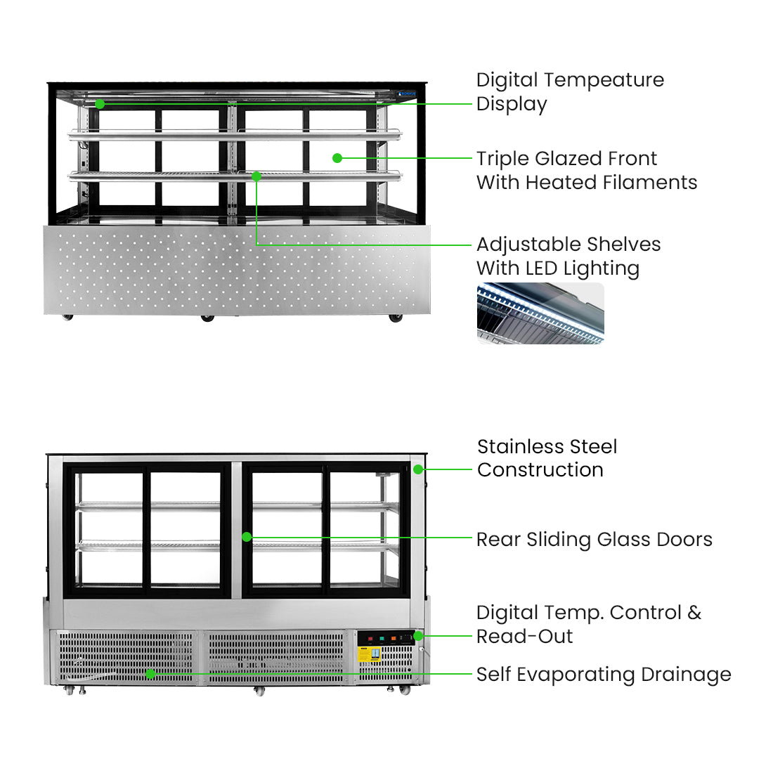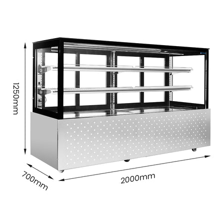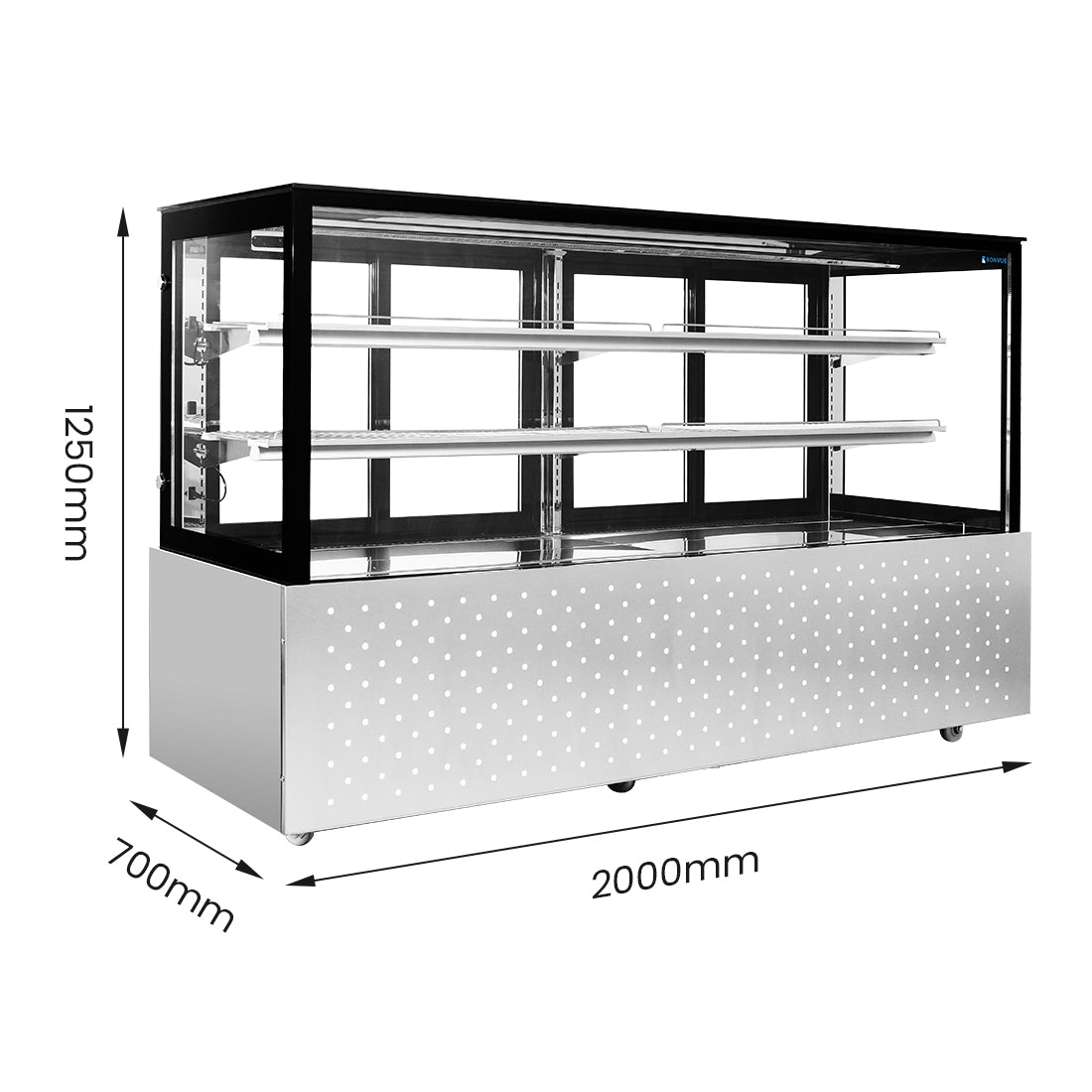 The Bonvue 2000mm Chilled Food Display – SG200FA-2XB is a heavy-duty, high-capacity refrigerated display cabinet designed for cafés, bakeries, patisseries, and food retailers needing maximum presentation space and storage.