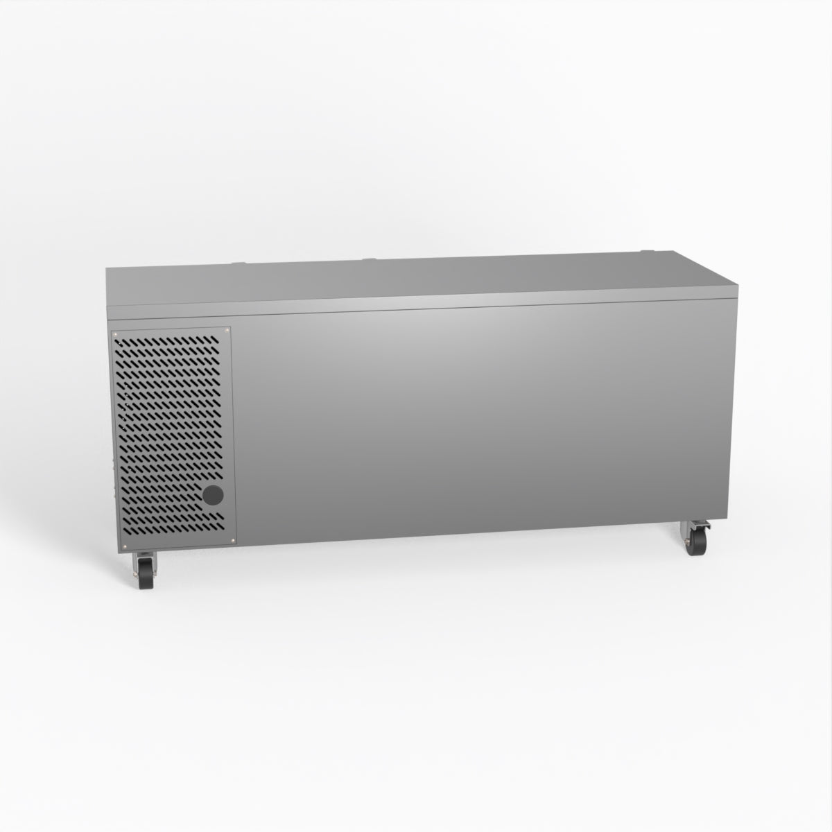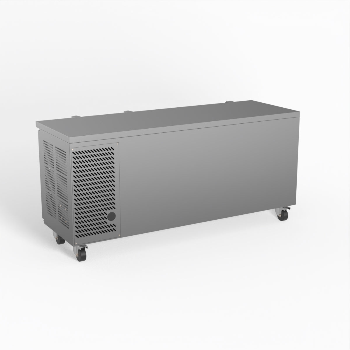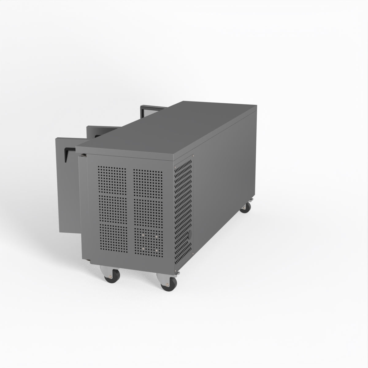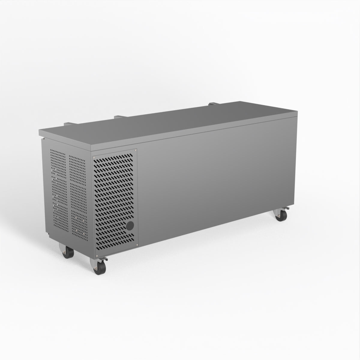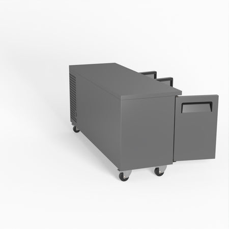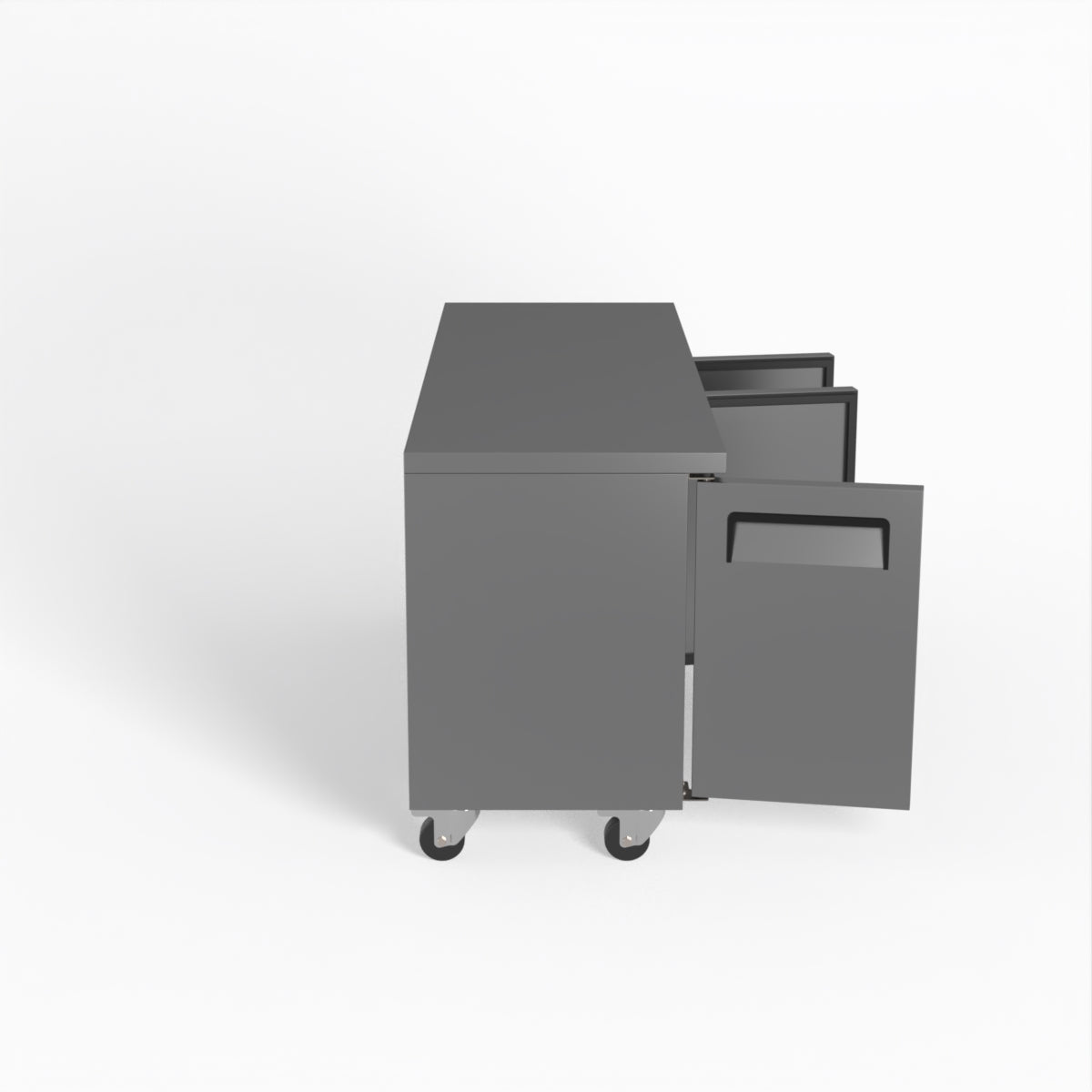 The heavy-duty stainless-steel worktop freezer conserves both space and energy and can be used as an under-bench or worktop. Fitted with heavy-duty doors, a Carel digital temperature controller, and a Cubigel compressor, this commercial unit is designed to function in environments of up to 43°C/65% humidity. Designed for restaurants, bars, clubs, and other hospitality venues, it features a unique centre-shelf connector so loose items do not fall through.