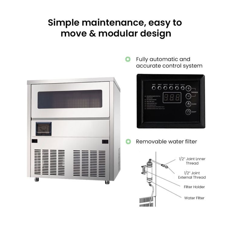 ✔ Generous Storage Capacity – Built-in 40kg ice bin for uninterrupted supply.