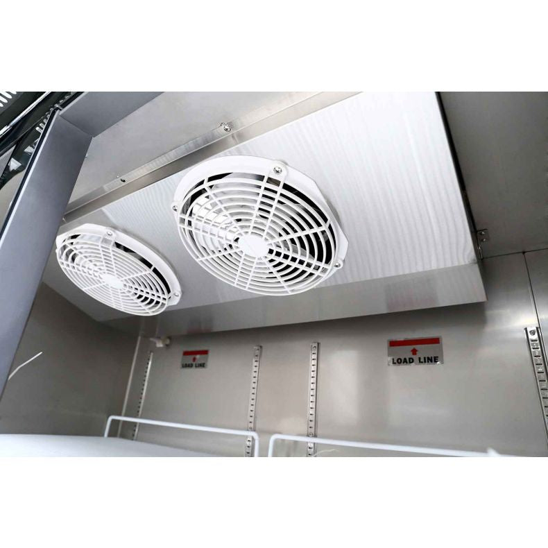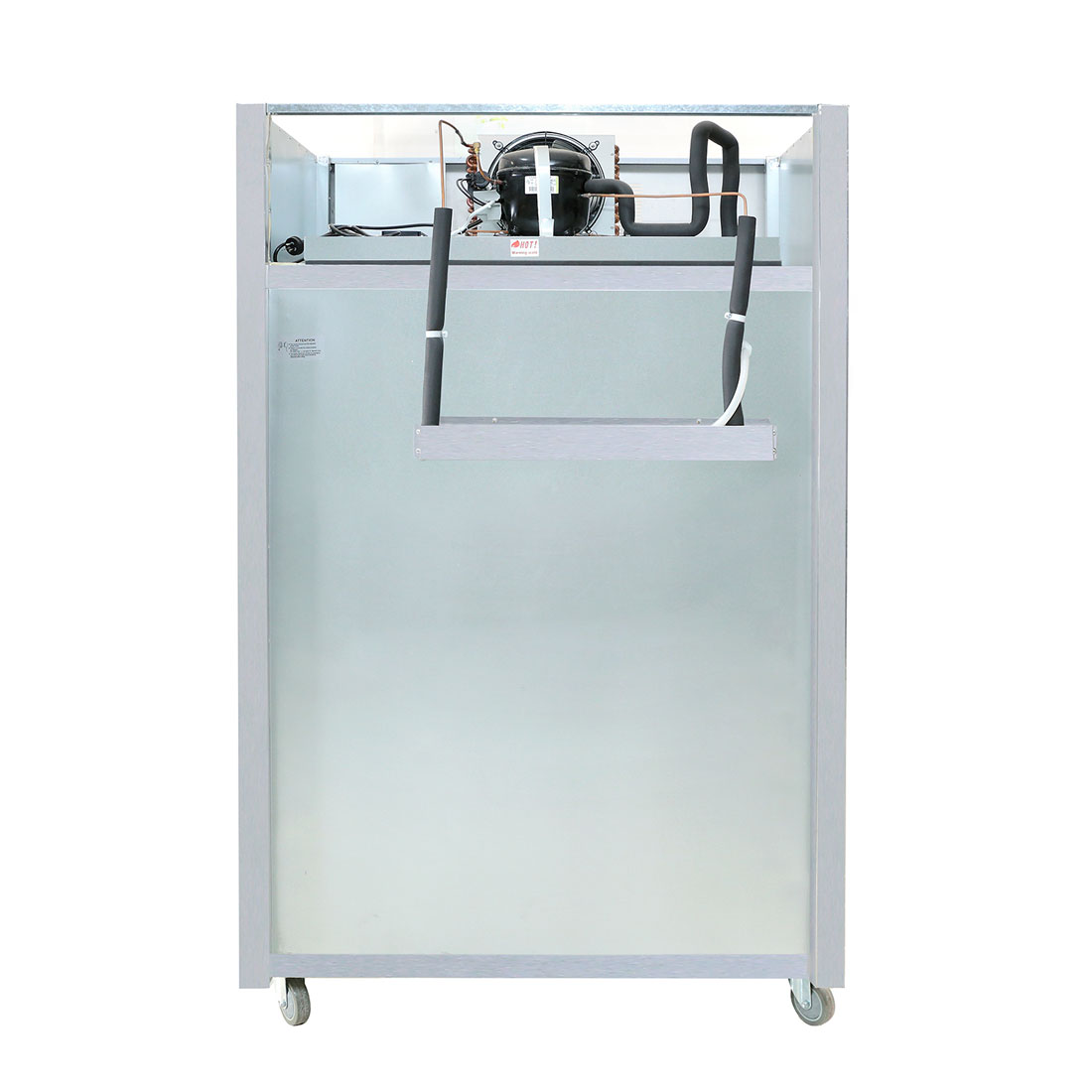 This broad, behemoth of a fridge comes packed with embrace compressors for function, a Dixell digital temp controller, four levels of shelving, fan-forced cooling, castors and self-drainage.