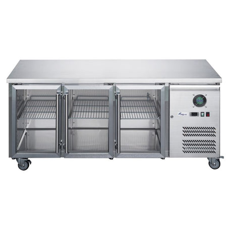 FED-X XUB7C18G3V Commercial Three Glass Door Bench Fridge – 417L Stainless Steel