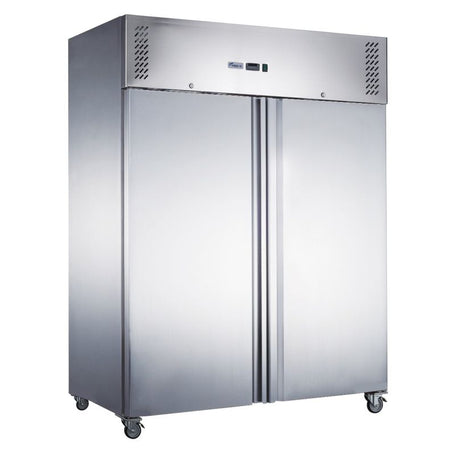 High-capacity 1236 L two-door stainless-steel upright fridge with fan-forced cooling, Dixell controls, and R290 refrigerant — ideal for restaurants, supermarkets, and commercial kitchens.