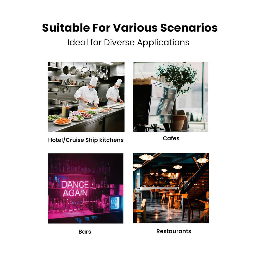 Perfect for supermarkets, restaurants, cafés, commercial kitchens and catering operations.